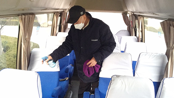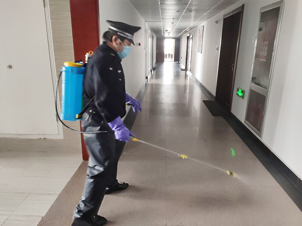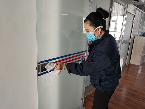 公司為在崗員工發(fā)放了口罩、噴壺、消毒酒精等防護(hù)用品,每日對各工作場所、班車、車庫、電梯、宿舍等進(jìn)行定點消毒。