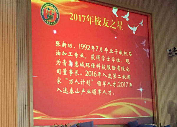 恭賀我公司董事長張新功被中國石油大學(xué)(華東)授予“校友之星”榮譽(yù)稱號