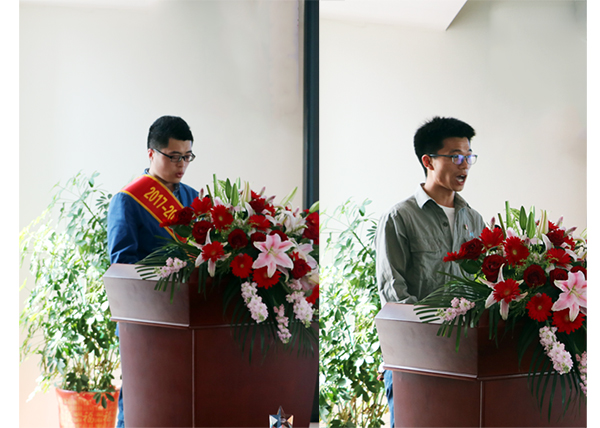 勞動模范代表汲傳奇和優(yōu)秀青年代表單國慶上臺發(fā)言