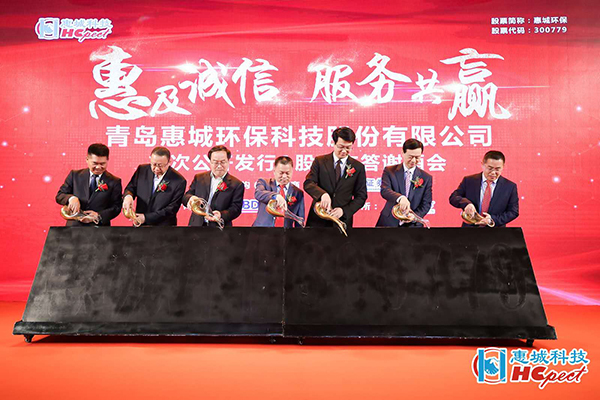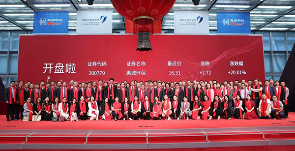 5月22日上午,青島惠城環(huán)??萍脊煞萦邢薰旧鲜袃x式在深圳證券交易所東門8樓大廳正式啟動(dòng)。青島市地方金融監(jiān)管局副局長王偉光、青島惠城環(huán)保科技股份有限公司董事長張新功、中德證券有限責(zé)任公司首席執(zhí)行官段濤致辭,隨著開市寶鐘的敲響,惠城環(huán)保正式上市。