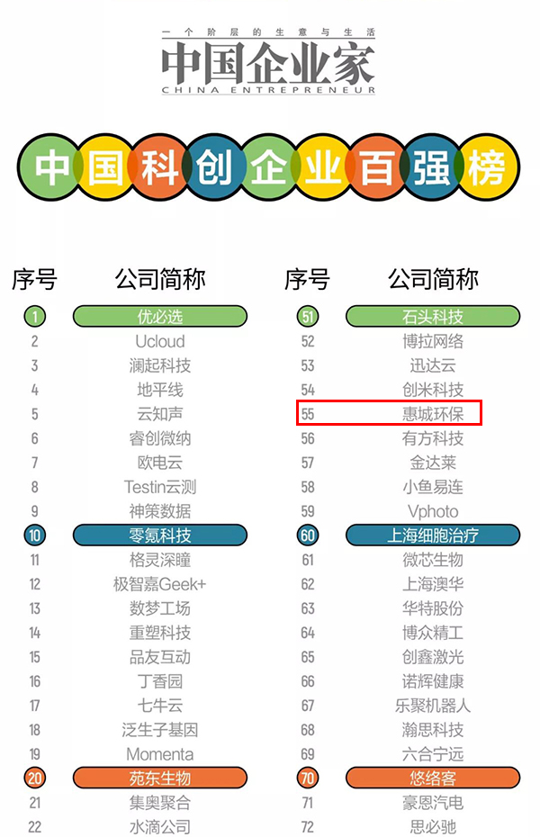 近日,《中國(guó)企業(yè)家》發(fā)布“科創(chuàng)企業(yè)百?gòu)?qiáng)榜”,我公司青島惠城環(huán)??萍脊煞萦邢薰疚涣衅渲?。