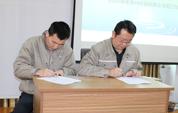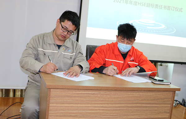 隨后公司總經(jīng)理與生產(chǎn)管理部、HSE管理部,生產(chǎn)管理部與設(shè)備管理部,設(shè)備管理部與維修維保方簽署了年度HSE責(zé)任書(shū)。
