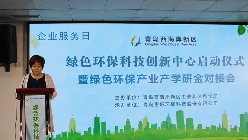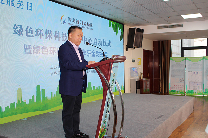 青島西海岸新區(qū)工信局副局長(zhǎng)張青宣讀《關(guān)于青島西海岸新區(qū)綠色環(huán)保科技創(chuàng)新中心的批復(fù)》