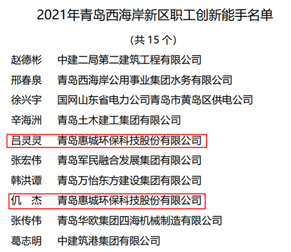 近日,青島西海岸新區(qū)總工會發(fā)布通知,公布“2021年度青島西海岸新區(qū)創(chuàng)新型班組、職工創(chuàng)新能手、職工創(chuàng)新成果”評選情況,公司工程技術(shù)研究中心榮獲新區(qū)創(chuàng)新型班組殊榮,該部門副主任呂靈靈、副主任工程師仉杰當選新區(qū)職工創(chuàng)新能手。