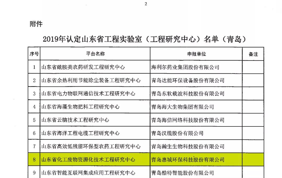 日前,根據(jù)山東省發(fā)展和改革委《關于公布2019年認定山東省工程實驗室(工程研究中心)名單的通知》(魯發(fā)改高技〔2019〕360號)發(fā)布文件,我公司申報的省級工程研究中心獲批并被認定為山東省化工廢物資源化技術工程研究中心。[ 查看更多 ]